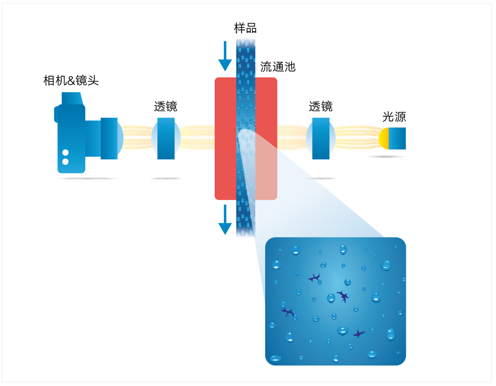 核心原理是让样品流过透明的微流通道,并在特定区域对每个通过的颗粒进行高频图像捕获,最终通过AI对所获取的图像进行归类和统计分析的自动化系统,可获取与颗粒有关的粒径、粒形、统计数、物质识别等多样化信息。