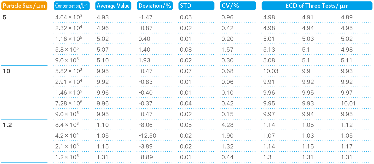 Wide dynamic range: Supports samples with a linear range of 500~5,000,000 particles/mL, and deducts adherent particles in real time.